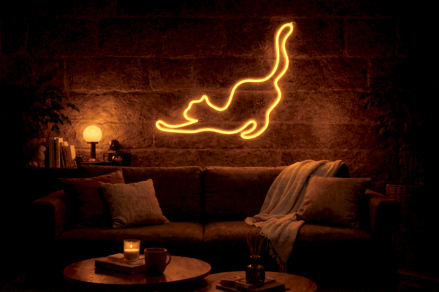 Modern LED neon kedi lambası ile yaşam alanınıza sıcak ve estetik bir dokunuş katın.