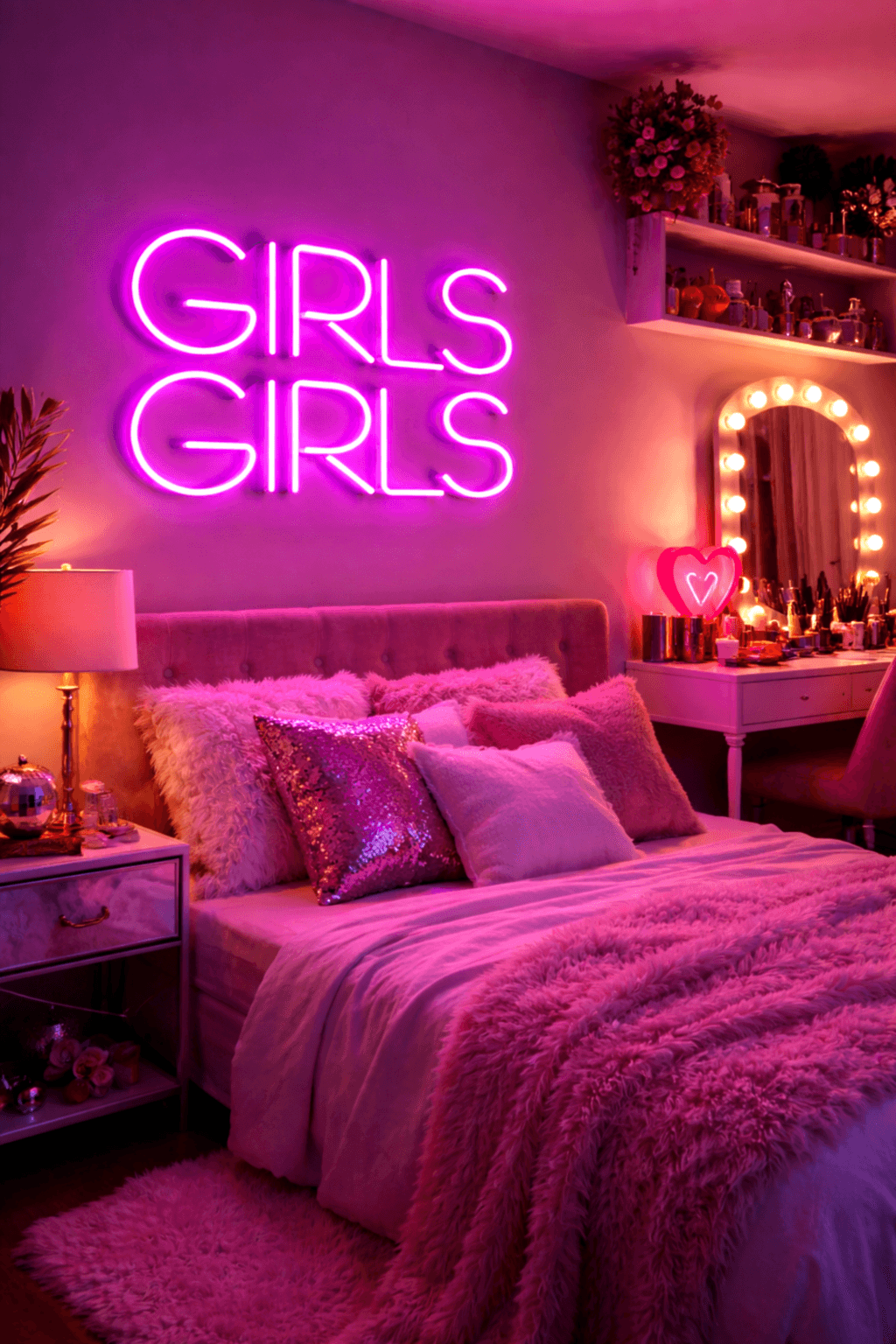 Bu dikkat çekici GIRLS GIRLS LED neon tabela ile yaşam alanınızı dönüştürün! Her odaya eğlenceli bir hava ve güçlü bir karakter katmak için tasarlanmıştır. İster genç odasında, ister glam bir makyaj köşesinde ya da modern bir oturma alanında kullanın; bulunduğu ortama özgüvenli ve feminen bir enerji yayar.