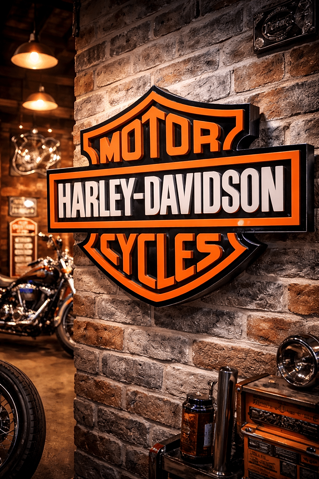 İkonik motosiklet kültürünü yansıtan Harley Davidson 3D kabartma pleksi tabela, güçlü ve karakteristik tasarımıyla mekanlarınıza premium bir atmosfer kazandırır. Kabartmalı (3D) yapısı sayesinde düz tabelalara göre daha derinlikli ve dikkat çekici bir görünüm sunar.