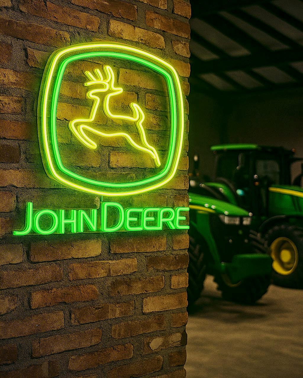 John Deere LED neon tabela, tarım ve makine tutkunları için vazgeçilmez bir dekor ürünüdür.