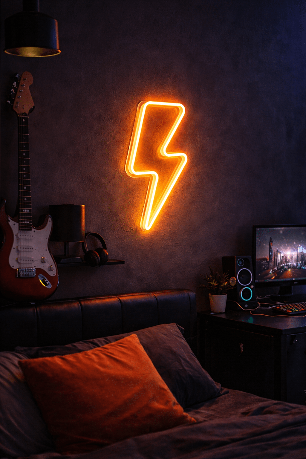 Enerjik tasarımıyla dikkat çeken şimşek figürlü LED neon tabela, modern dekorasyonlara güçlü ve dinamik bir atmosfer kazandıran dekoratif bir duvar aydınlatmasıdır. Şimşek sembolünden ilham alan bu neon ışık, özellikle gaming odaları, genç odaları, müzik stüdyoları, kafeler ve modern yaşam alanları için popüler bir dekoratif aydınlatma ürünüdür.
