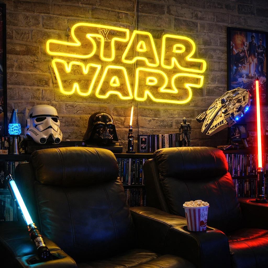 Bu neon tabela özellikle Star Wars hayranları, sinema odaları, oyun odaları, koleksiyon alanları, YouTube stüdyoları ve geek dekorasyon sevenler için idealdir. Ortama sinematik, nostaljik ve güçlü bir ambiyans kazandırır.